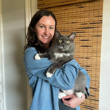 Lawren is a lifelong cat lover & proud cat mom of five! 🐾 They're available on weekends and holidays, offering medication skills and responding quickly to ensure your cat is cared for with love and attention.